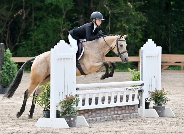 Then I got Royal who was originally intended to be my move up jumper. She arrived to us in need of love and care, and we found what we thought was an injury. Over the next ten months, I rehabbed her while I continued riding other horses and developing my skills. While she was off, I had the opportunity to work with a 3 year old project pony. Many told me to give up on Royal, but I remained committed to her until we could ride again. She became my best friend and I quickly realized how much love she has in her heart. Now, I’ve had Royal for a year and a half and we compete successfully at shows. While the journey was anything but easy, Royal taught me what real horsemanship and perseverance is, and helped my dreams come true.